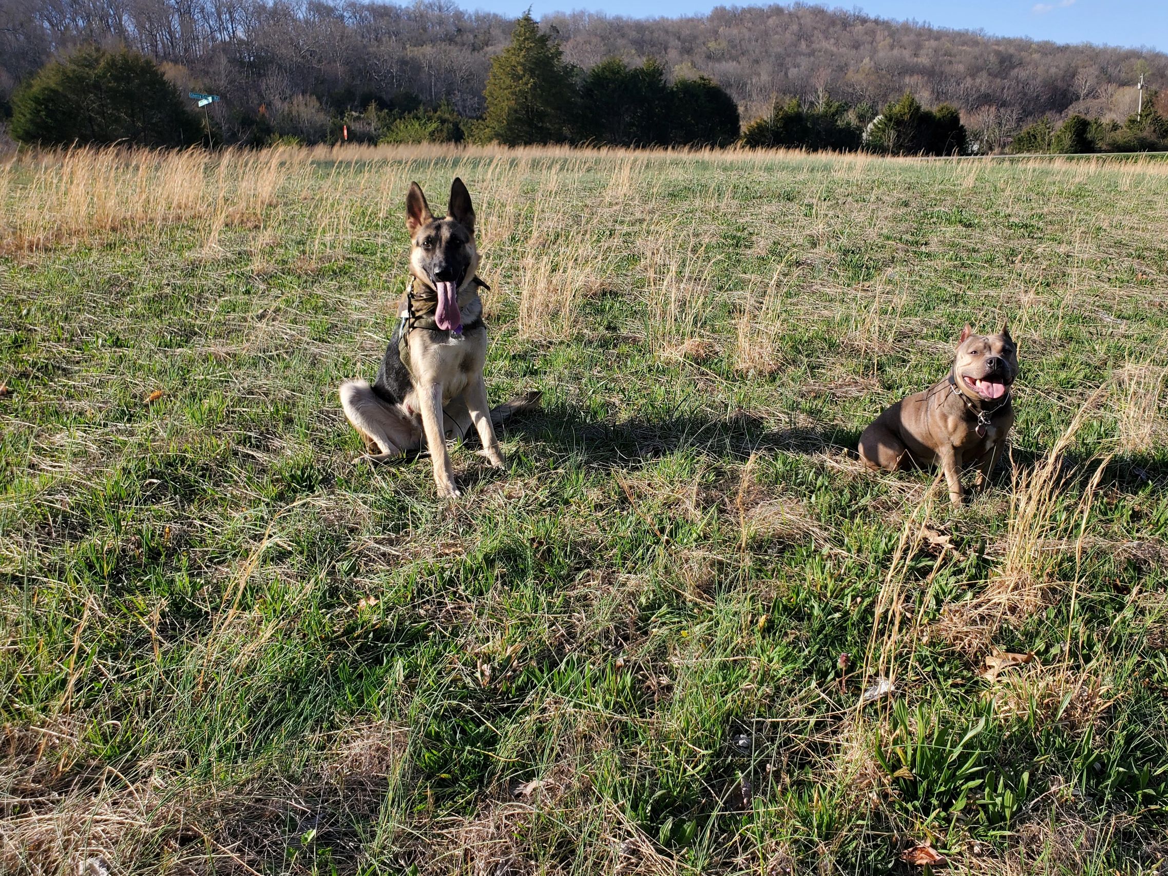 Diesel and Makenna holding a group stay together.